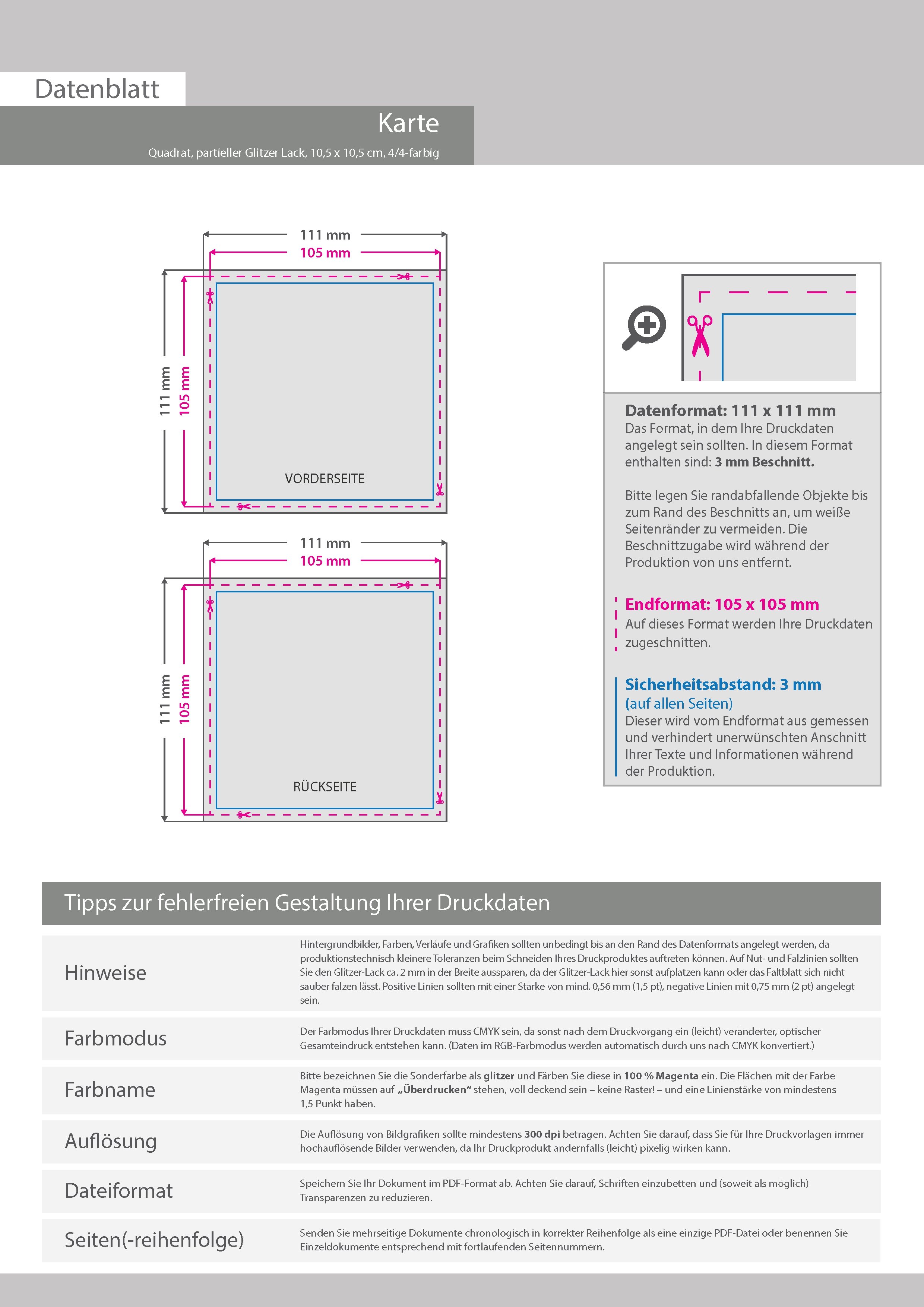 Taufkarte 105 x 105 mm 4/4 farbig mit beidseitig partieller Glitzer-Lackierung