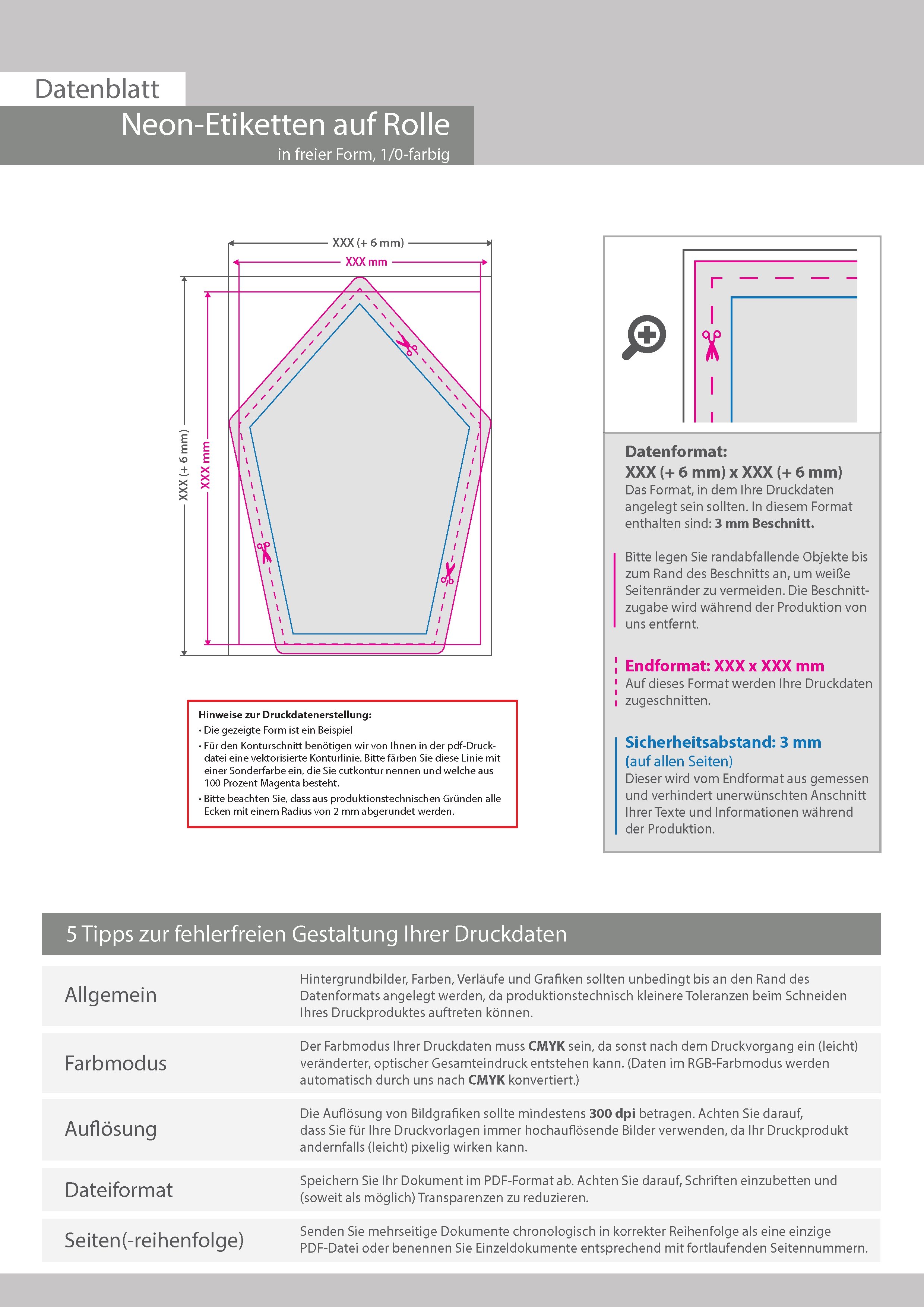 Hochwertige Neon-Etiketten auf Rolle in Frei-Form (eine Stanzform möglich)