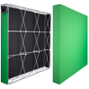 Wer eine etwas größere Greenscreen-Wand bevorzugt, findet bei uns zudem Greenscreen-Faltdisplays mit Kedersystem. Dank des Kedersystems sitzt der 280 g/m² starke Blockout-Textildisplaystoff straff auf dem Gestell und ermöglicht professionelle Aufnahmen. Unsere Faltdisplays mit Greenscreen erhalten Sie in drei Größen von 2845 x 2243 mm bis 4404 x 2245 mm und können diese einfach auf- und abbauen. Alle Modelle sind außerdem B1-zertfiziert und damit schwer entflammbar.